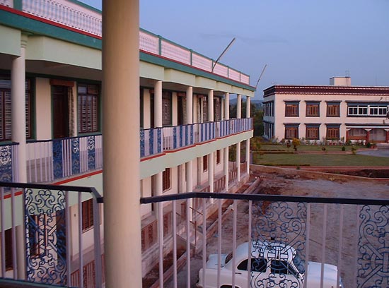 transportés on the left our guest house, in front of the new medical center of traditional tibetan medicine sponsorised by german association |