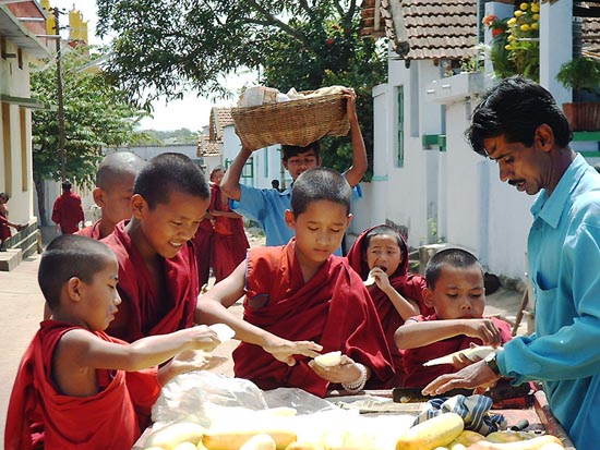 pour payer le marchand indien since 5 am they have been up, at 10.30 am small children take break, and they buy gold concomber with red spices to indian shop, they pay with school tickets |