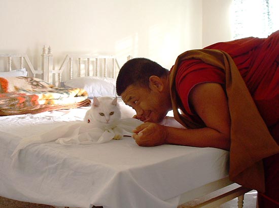 du cou avant le départ before departure silk scarf 'll be offered by Nawang and Monastery, like travellers Minette was also recieved one |