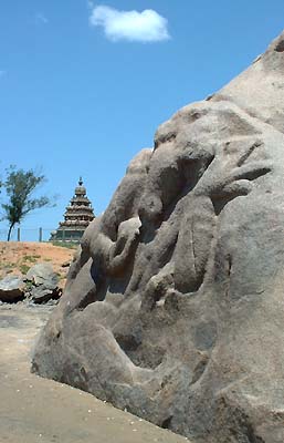 Il suffit de deux fois pour que cela devienne de l'habitude : arrivés à Madras (ici on dit Chennay ) on a filé tout droit à Mamallapuram, un petit village en bord de mer, entre Madras et Pondy, histoire de se réveiller dans un endroit superbe et se donner l'occasion de découvrir encore quelques temples-niches du XIIIe, sculptés dans les rochers de granit. |
