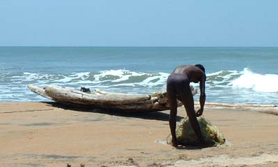 Connaissez-vous le seul mot d'origine tamoul présent dans le dictionnaire français ? c'est "catamaran" qui signifie "bateau fait de troncs liés", et sur ces catamarans, les pêcheurs debout partent au large après avoir passé la barre | ||