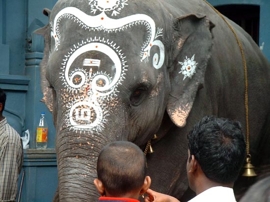 Voici le seul éléphant de Pondy, en réalité une éléphante adorable attachée à un des temples importants dédié au Dieu Ganesh bien sûr.